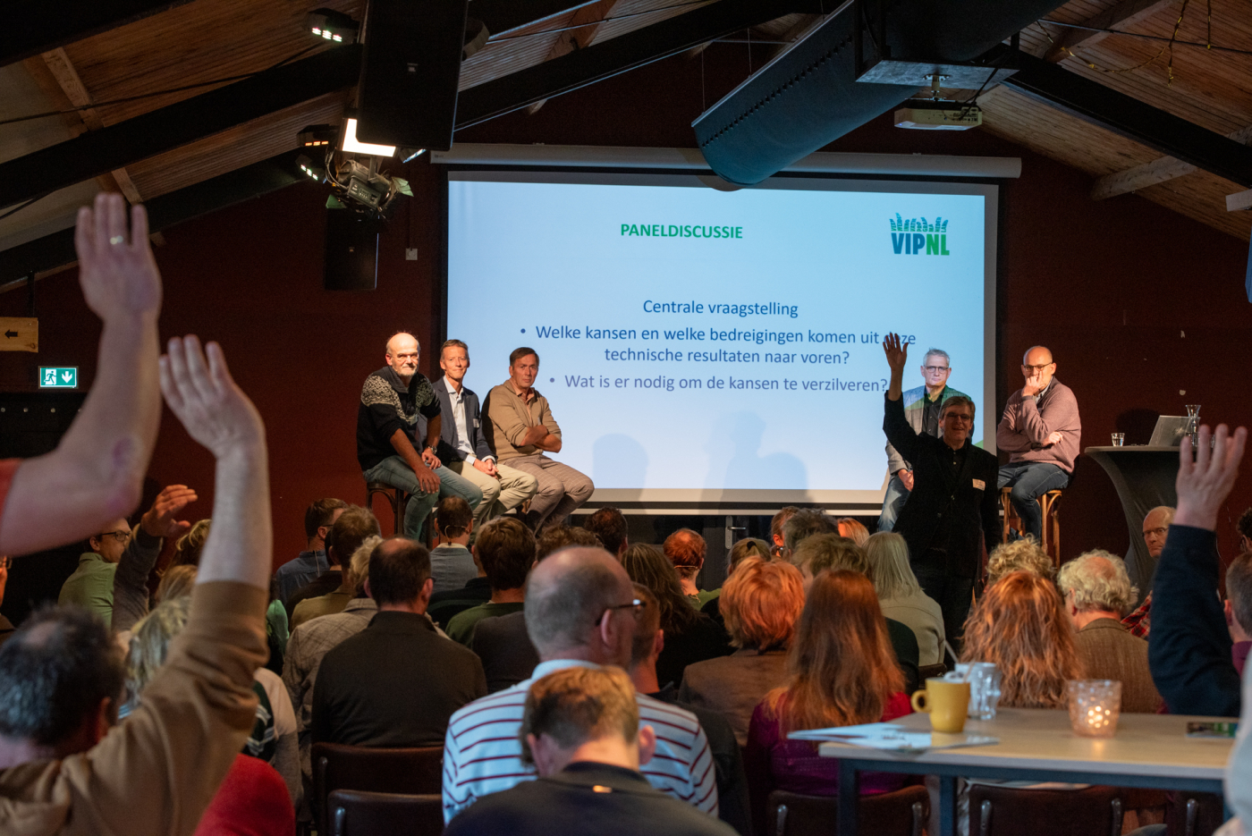 Er komen veel inhoudelijke vragen uit het publiek. Waarom is gekozen voor Jerseys? Jeroen legt uit dat ze lichter zijn en mogelijk beter met ruwvoer omgaan, maar dat op het bedrijf met Jerseys verschillen in mineralenbenutting en broeikasgasemissies uiteindelijk klein bleken.